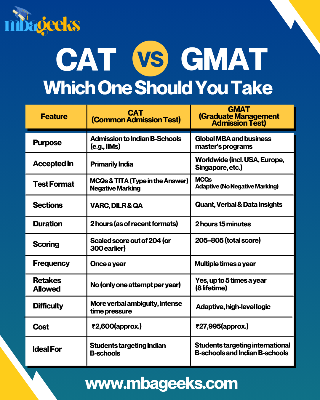 CAT makes sense for India-focused aspirants, while GMAT gives you flexibility and global reach.