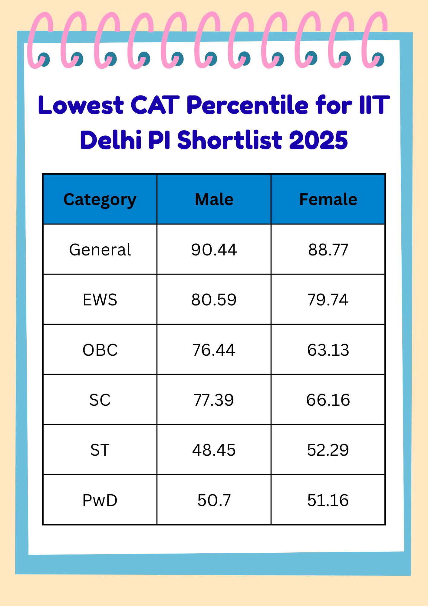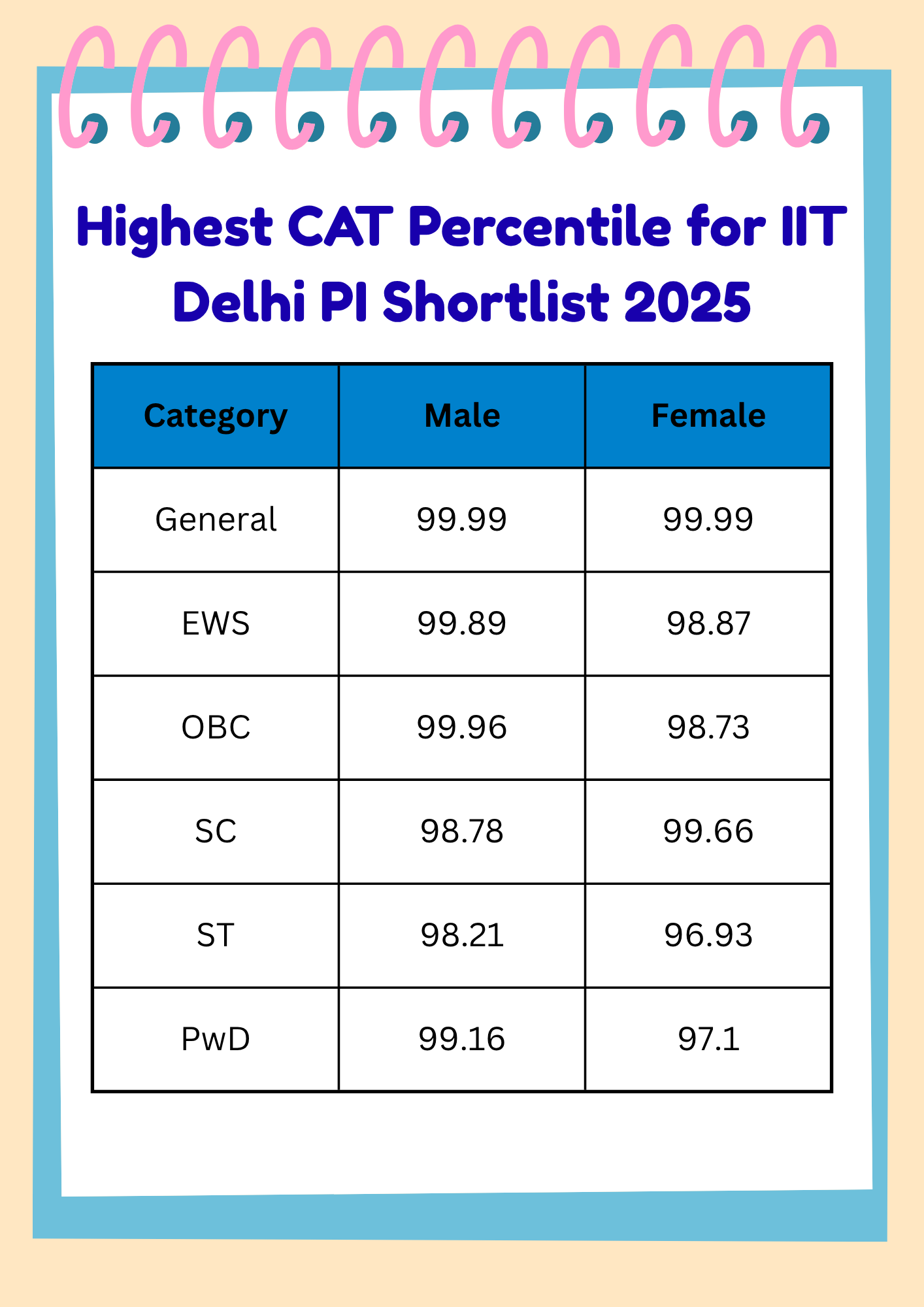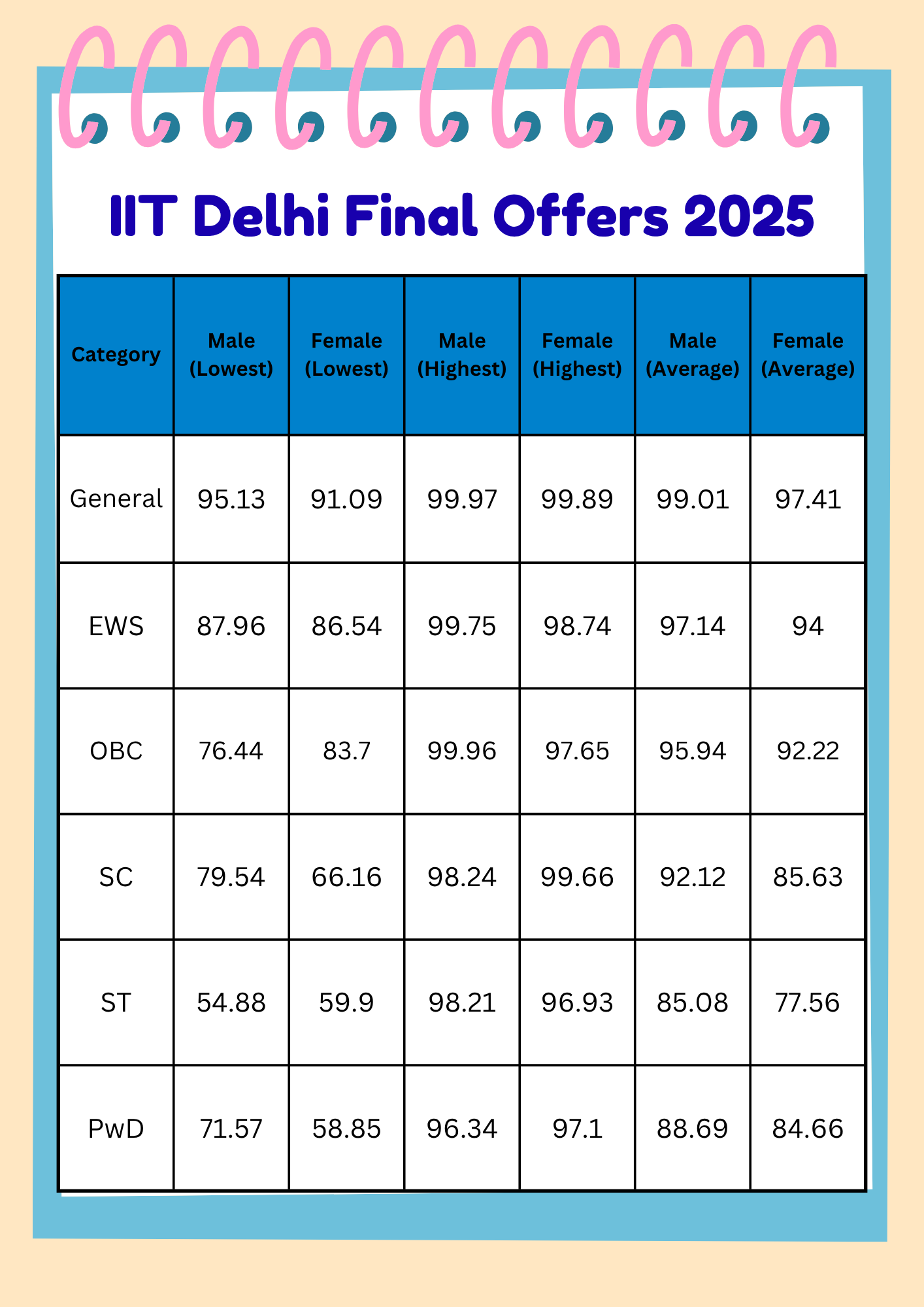 • IIT Delhi maintained a competitive cutoff, with General category admits above the 95 percentile.