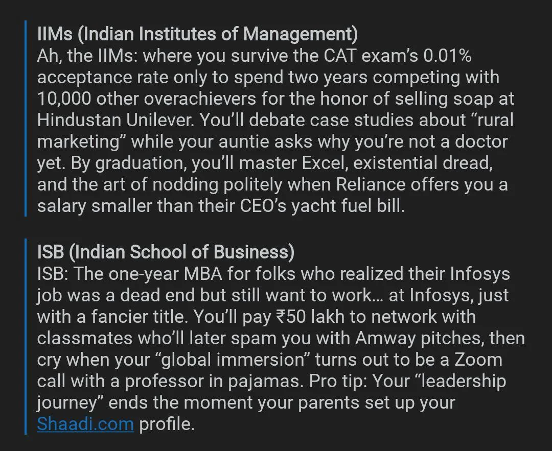 Roasted IIM + ISB in one post...