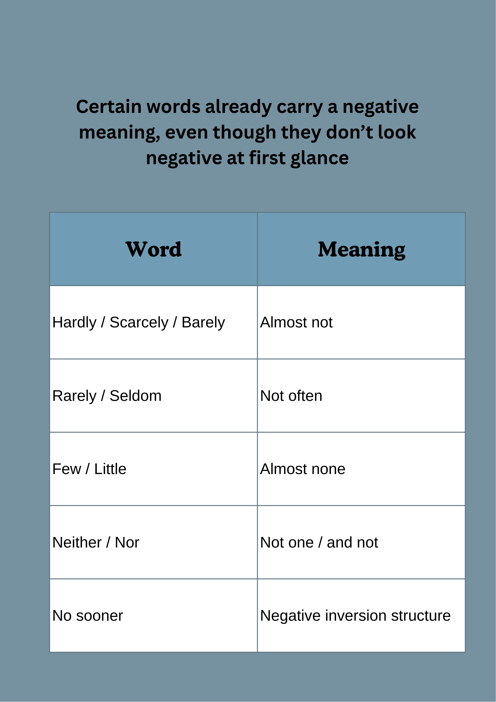 Certain words already carry a negative meaning, even though they don’t look negative.